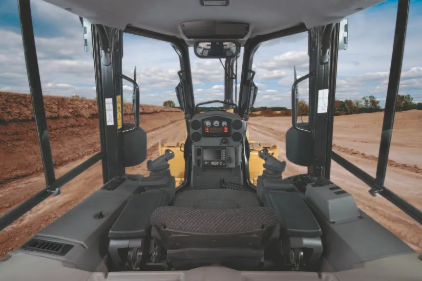 Advanced Technology: Features AccuGrade™ Systems for precision grading, SystemOne™ Undercarriage for reduced maintenance costs, and comfortable cab with seat-mounted controls for reduced operator fatigue.